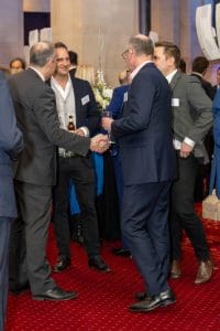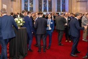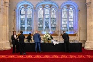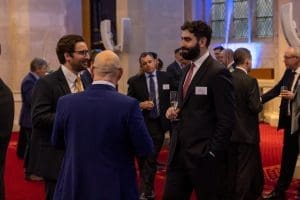 Set in London’s iconic Guildhall, the venue was elegantly decorated with simple white flowers and subtly lit with the company’s colours and logos. Throughout the night, guests enjoyed a variety of canapes and drinks. There was a vibrant atmosphere, with guests engaging in conversations and networking with each other.