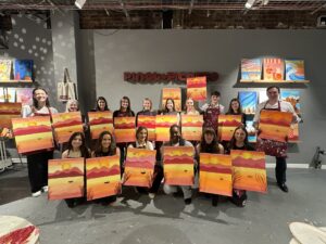 The group were guided through the process of painting a beautiful sunset scene, while enjoying drinks and nibbles and reflecting on the achievements and impacts of women across the industry.