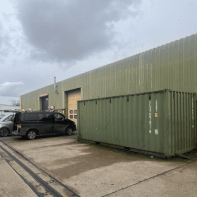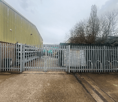 The property is accessed via a communal concrete access road, shared with the other three units on the Square, which leads to a loading/parking area to the front, along with a further secure yard to the side of the building, bounded by steel palisade