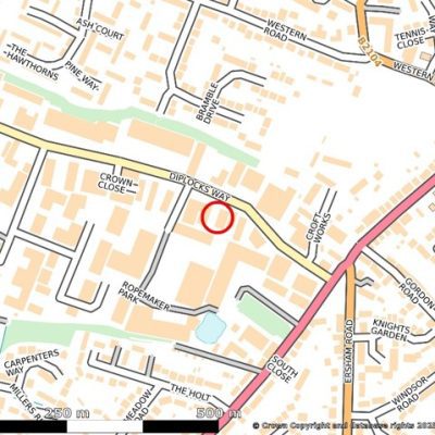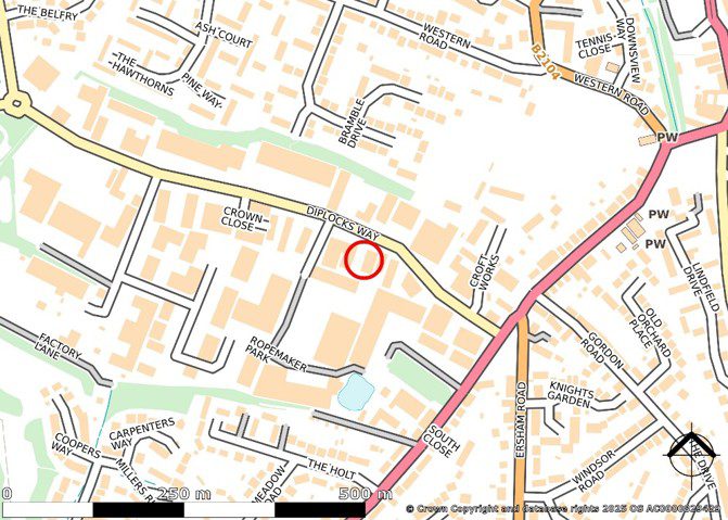 The property forms part of a development of four industrial units on the southern side of Diplocks Way, between the junctions with Gleneagles Drive and South Road in Hailsham, within the district of Wealden.